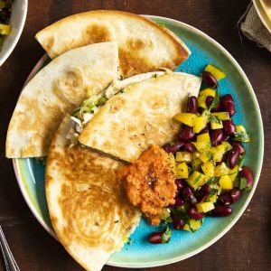 Een Spaanstalig spreekwoord luidt: “panza llena, corazón contenta”. Ofwel: is je buik vol, dan is het hart tevreden. En deze heerlijke quesadilla’s gaan daarvoor zorgen, want met die lekker pittige tomatensalsa zet je geheid een hit op tafel.